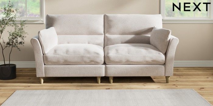 7.2.6 Buy Hartley Highback Relaxed Sit 4 Seater Sofa Multi Weave Oyster Low Conical - Light from the Next UK online shop Click here to use our accessible website