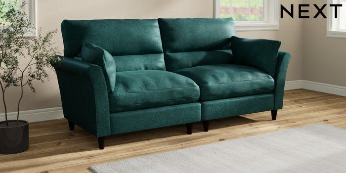 7.3.1 Buy Hartley Highback Relaxed Sit 4 Seater Sofa Plush Chenille Dark Teal Green Low Conical - Dark from the Next UK online shop