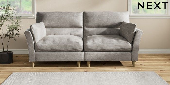 7.2.10 Buy Hartley Highback Relaxed Sit 4 Seater Sofa Plush Chenille Light Grey Low Conical - Light from the Next UK online shop Click here to use our accessible website