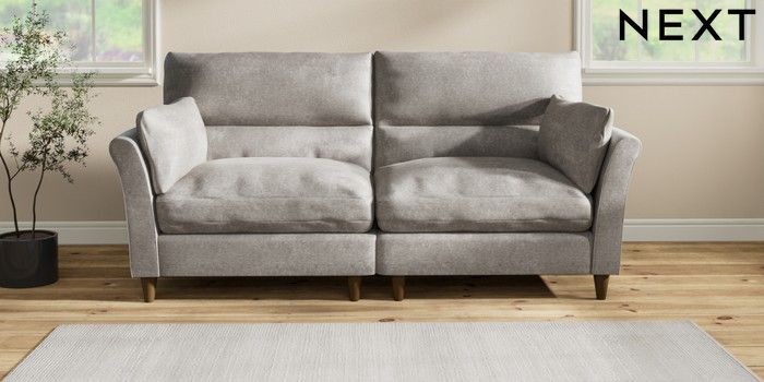 7.2.10 Buy Hartley Highback Relaxed Sit 4 Seater Sofa Plush Chenille Light Grey Low Conical - Mid from the Next UK online shop Click here to use our accessible website