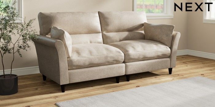7.3.1 Buy Hartley Highback Relaxed Sit 4 Seater Sofa Plush Chenille Light Natural Low Conical - Dark from the Next UK online shop