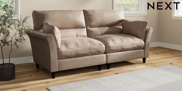 7.3.1 Buy Hartley Highback Relaxed Sit 4 Seater Sofa Plush Chenille Mid Natural Low Conical - Dark from the Next UK online shop