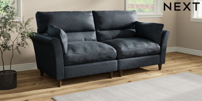 7.3.1 Buy Hartley Highback Relaxed Sit 4 Seater Sofa Plush Chenille Slate Blue Low Conical - Mid from the Next UK online shop