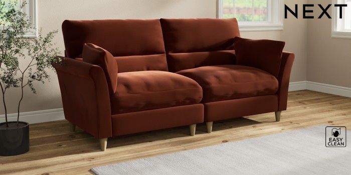 7.3.1 Buy Hartley Highback Relaxed Sit 4 Seater Sofa Plush Velvet Easy Clean Ginger Orange Low Conical - Light from the Next UK online shop