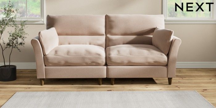 7.2.10 Buy Hartley Highback Relaxed Sit 4 Seater Sofa Relaxed Linen Look Mid Natural Low Conical - Mid from the Next UK online shop Click here to use our accessible website
