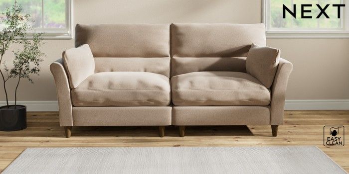 7.2.10 Buy Hartley Highback Relaxed Sit 4 Seater Sofa Tweedy Blend Easy Clean Light Dove Natural Low Conical - Mid from the Next UK online shop Click here to use our accessible website