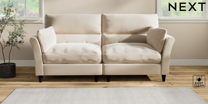 7.2.10 Buy Hartley Highback Relaxed Sit 4 Seater Sofa Tweedy Blend Easy Clean Oyster Low Conical - Dark from the Next UK online shop Click here to use our accessible website