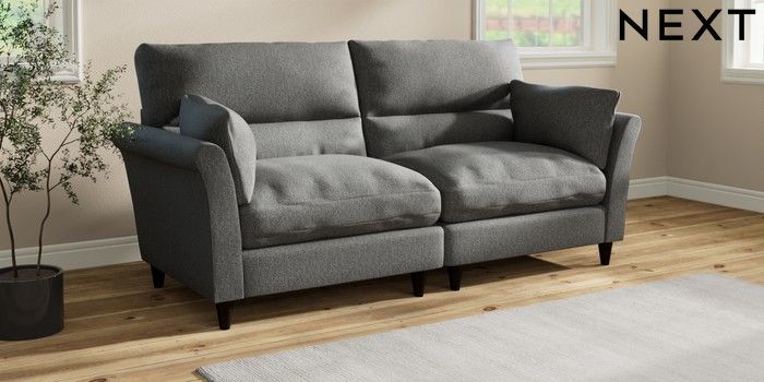 7.3.1 Buy Hartley Highback Relaxed Sit 4 Seater Sofa Tweedy Chenille Dark Grey Low Conical - Dark from the Next UK online shop