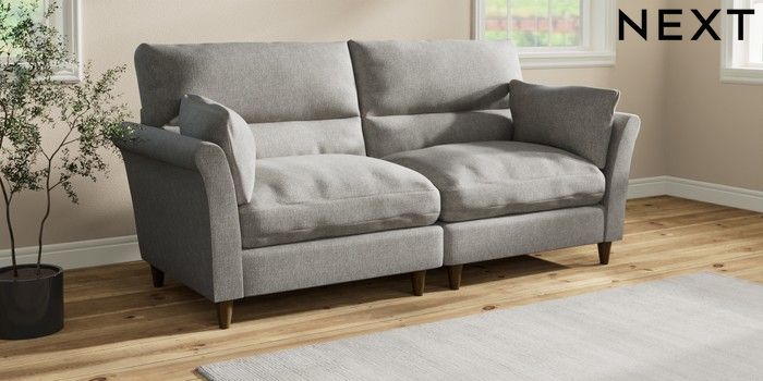 7.3.1 Buy Hartley Highback Relaxed Sit 4 Seater Sofa Tweedy Chenille Mid Grey Low Conical - Mid from the Next UK online shop