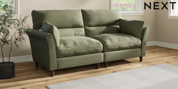 7.3.1 Buy Hartley Highback Relaxed Sit 4 Seater Sofa Tweedy Chenille Mid Moss Green Low Conical - Mid from the Next UK online shop