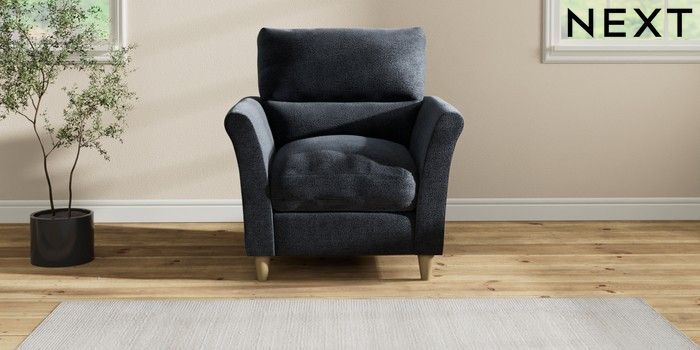 7.2.10 Buy Hartley Highback Relaxed Sit Armchair Boucle Chenille Dark Slate Blue Low Conical - Light from the Next UK online shop Click here to use our accessible website