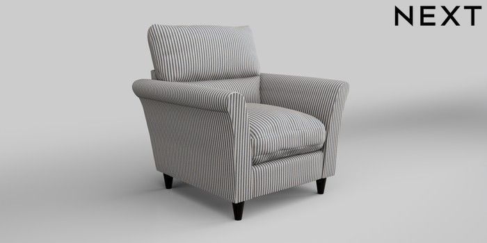 6.12.1 Buy Hartley Highback Relaxed Sit Armchair Chenille Stripe Slate Blue Low Conical - Dark from the Next UK online shop Click here to use our accessible website