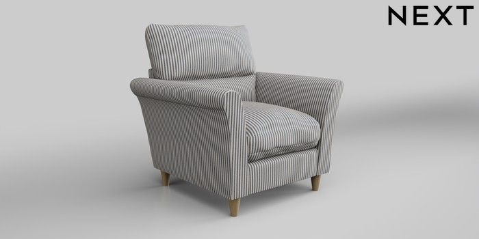 6.12.1 Buy Hartley Highback Relaxed Sit Armchair Chenille Stripe Slate Blue Low Conical - Light from the Next UK online shop Click here to use our accessible website