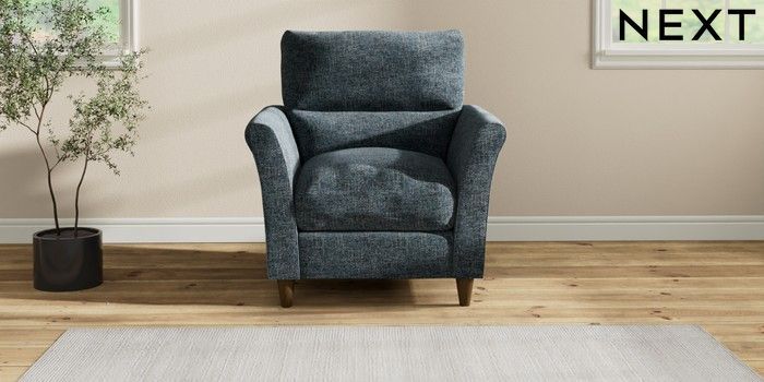 7.2.10 Buy Hartley Highback Relaxed Sit Armchair Chunky Chenille Dark Navy Blue Low Conical - Mid from the Next UK online shop Click here to use our accessible website
