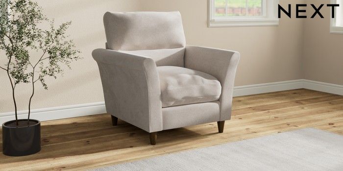 7.3.1 Buy Hartley Highback Relaxed Sit Armchair Chunky Chenille Oyster Low Conical - Mid from the Next UK online shop