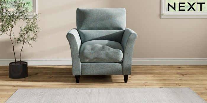 7.2.10 Buy Hartley Highback Relaxed Sit Armchair Chunky Marl Mid Blue Low Conical - Dark from the Next UK online shop Click here to use our accessible website