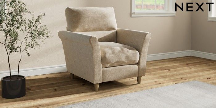 7.3.1 Buy Hartley Highback Relaxed Sit Armchair Chunky Weave Cream Low Conical - Light from the Next UK online shop