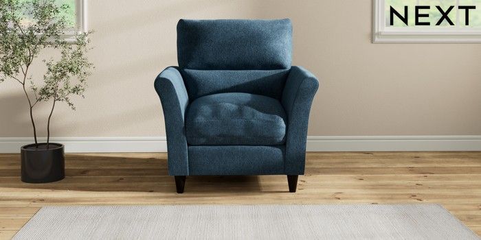 7.2.10 Buy Hartley Highback Relaxed Sit Armchair Cotswold Chenille Dark Blue Low Conical - Dark from the Next UK online shop Click here to use our accessible website