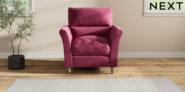 7.2.10 Buy Hartley Highback Relaxed Sit Armchair Cotswold Chenille Dark Raspberry Pink Low Conical - Light from the Next UK online shop Click here to use our accessible website
