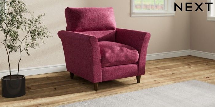 7.3.1 Buy Hartley Highback Relaxed Sit Armchair Cotswold Chenille Dark Raspberry Pink Low Conical - Mid from the Next UK online shop