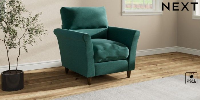 7.3.1 Buy Hartley Highback Relaxed Sit Armchair Fine Chenille Easy Clean Dark Juniper Green Low Conical - Mid from the Next UK online shop