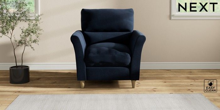 7.2.10 Buy Hartley Highback Relaxed Sit Armchair Fine Chenille Easy Clean Dark Navy Blue Low Conical - Light from the Next UK online shop Click here to use our accessible website