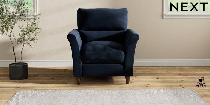 7.2.10 Buy Hartley Highback Relaxed Sit Armchair Fine Chenille Easy Clean Dark Navy Blue Low Conical - Mid from the Next UK online shop Click here to use our accessible website