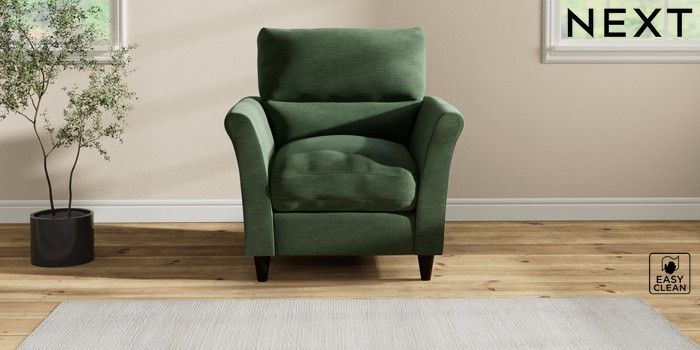 7.2.10 Buy Hartley Highback Relaxed Sit Armchair Fine Chenille Easy Clean Mid Khaki Green Low Conical - Dark from the Next UK online shop Click here to use our accessible website