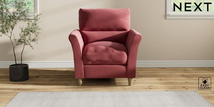 7.2.10 Buy Hartley Highback Relaxed Sit Armchair Fine Chenille Easy Clean Mid Pink Low Conical - Light from the Next UK online shop Click here to use our accessible website