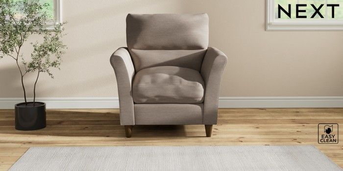 7.3.1 Buy Hartley Highback Relaxed Sit Armchair Fine Chenille Easy Clean Mid Taupe Brown Low Conical - Mid from the Next UK online shop Click here to use our accessible website