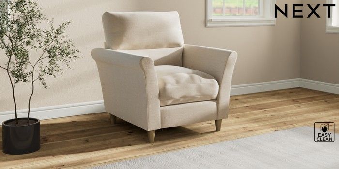 7.3.1 Buy Hartley Highback Relaxed Sit Armchair Fine Chenille Easy Clean Oyster Low Conical - Light from the Next UK online shop