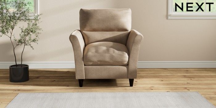 7.2.10 Buy Hartley Highback Relaxed Sit Armchair Luxe Chenille Mid Camel Beige Low Conical - Dark from the Next UK online shop Click here to use our accessible website