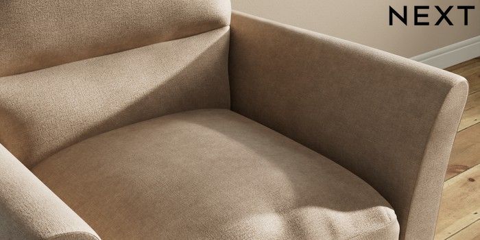 7.3.1 Buy Hartley Highback Relaxed Sit Armchair Luxe Chenille Mid Camel Beige Low Conical - Light from the Next UK online shop