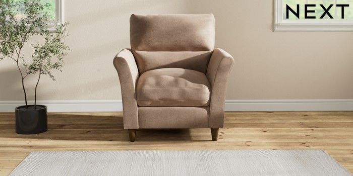 7.2.10 Buy Hartley Highback Relaxed Sit Armchair Luxe Chenille Mid Natural Low Conical - Mid from the Next UK online shop Click here to use our accessible website