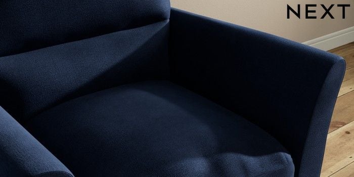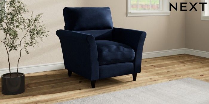 7.3.1 Buy Hartley Highback Relaxed Sit Armchair Luxe Chenille Navy Blue Low Conical - Dark from the Next UK online shop