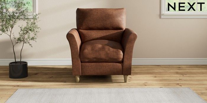 7.3.1 Buy Hartley Highback Relaxed Sit Armchair Monza Faux Leather Easy Clean Chestnut Brown Low Conical - Light from the Next UK online shop Click here to use our accessible website