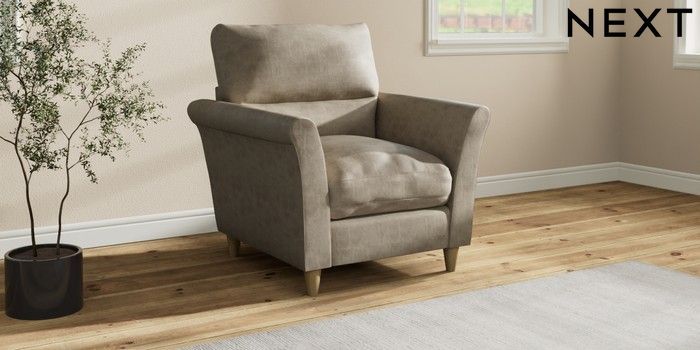 7.3.1 Buy Hartley Highback Relaxed Sit Armchair Monza Faux Leather Easy Clean Mink Brown Low Conical - Light from the Next UK online shop Click here to use our accessible website