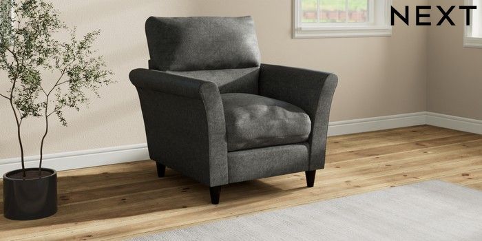 7.3.1 Buy Hartley Highback Relaxed Sit Armchair Plush Chenille Dark Grey Low Conical - Dark from the Next UK online shop