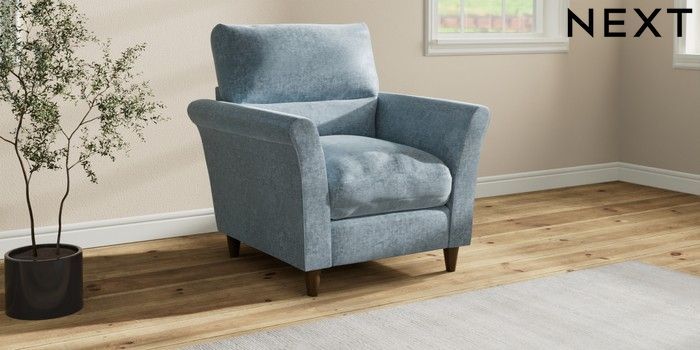 7.3.1 Buy Hartley Highback Relaxed Sit Armchair Plush Chenille Light Blue Low Conical - Mid from the Next UK online shop