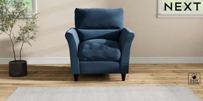 7.3.1 Buy Hartley Highback Relaxed Sit Armchair Plush Velvet Easy Clean Airforce Blue Low Conical - Dark from the Next UK online shop Click here to use our accessible website