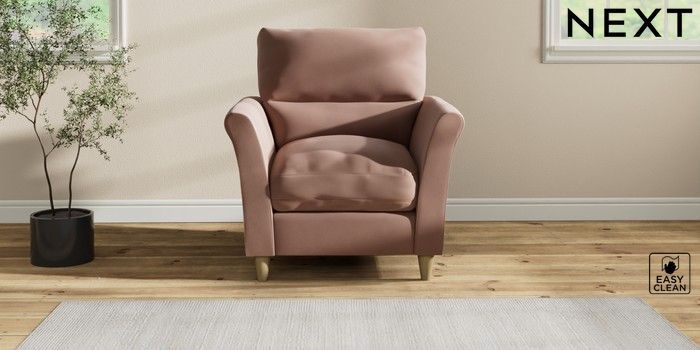7.2.10 Buy Hartley Highback Relaxed Sit Armchair Plush Velvet Easy Clean Mid Natural Low Conical - Light from the Next UK online shop Click here to use our accessible website
