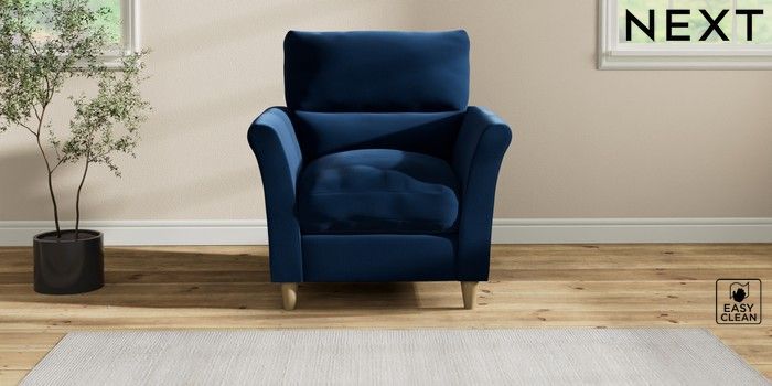 7.2.10 Buy Hartley Highback Relaxed Sit Armchair Plush Velvet Easy Clean Navy Blue Low Conical - Light from the Next UK online shop Click here to use our accessible website