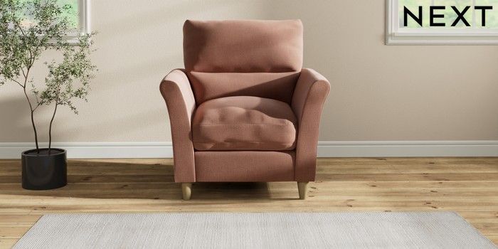 7.2.10 Buy Hartley Highback Relaxed Sit Armchair Relaxed Linen Look Light Rust Brown Low Conical - Light from the Next UK online shop Click here to use our accessible website