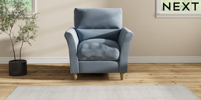 7.2.10 Buy Hartley Highback Relaxed Sit Armchair Relaxed Linen Look Mid Blue Low Conical - Light from the Next UK online shop Click here to use our accessible website