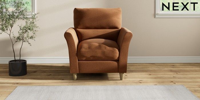 7.2.10 Buy Hartley Highback Relaxed Sit Armchair Ripple Chenille Mid Rust Brown Low Conical - Light from the Next UK online shop Click here to use our accessible website