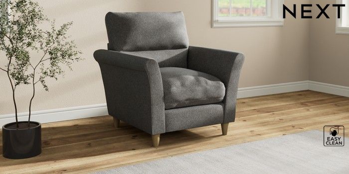 7.3.1 Buy Hartley Highback Relaxed Sit Armchair Tweedy Blend Easy Clean Dark Grey Low Conical - Light from the Next UK online shop
