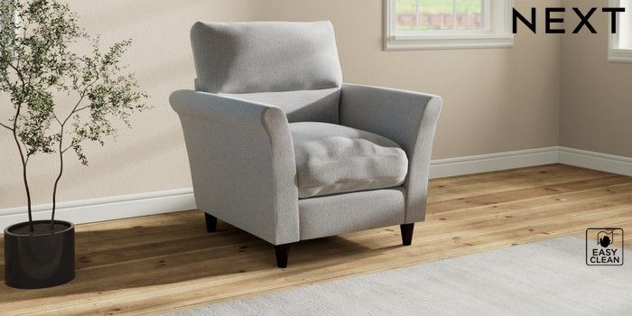 7.3.1 Buy Hartley Highback Relaxed Sit Armchair Tweedy Blend Easy Clean Light Silver Grey Low Conical - Dark from the Next UK online shop