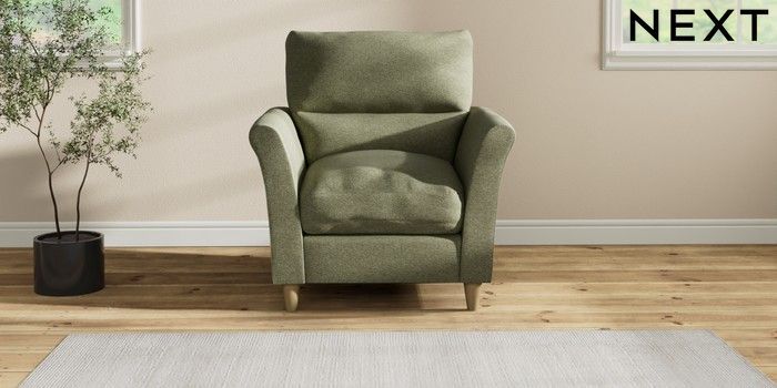 7.2.10 Buy Hartley Highback Relaxed Sit Armchair Tweedy Chenille Mid Moss Green Low Conical - Light from the Next UK online shop Click here to use our accessible website