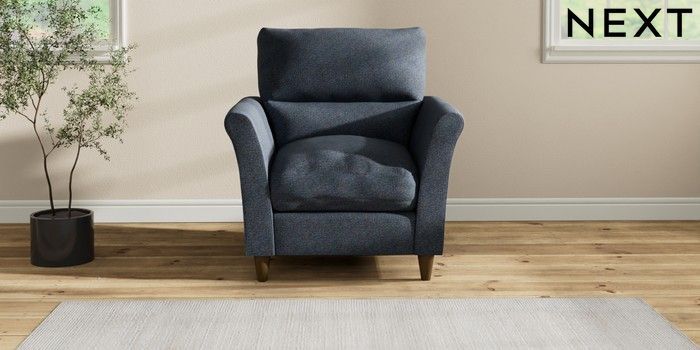 7.2.10 Buy Hartley Highback Relaxed Sit Armchair Tweedy Chenille Navy Blue Low Conical - Mid from the Next UK online shop Click here to use our accessible website