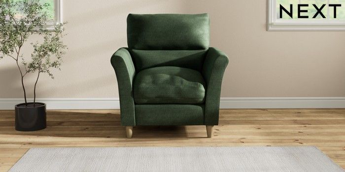 7.2.10 Buy Hartley Highback Relaxed Sit Armchair Luxe Chenille Dark Green Low Conical - Light from the Next UK online shop Click here to use our accessible website